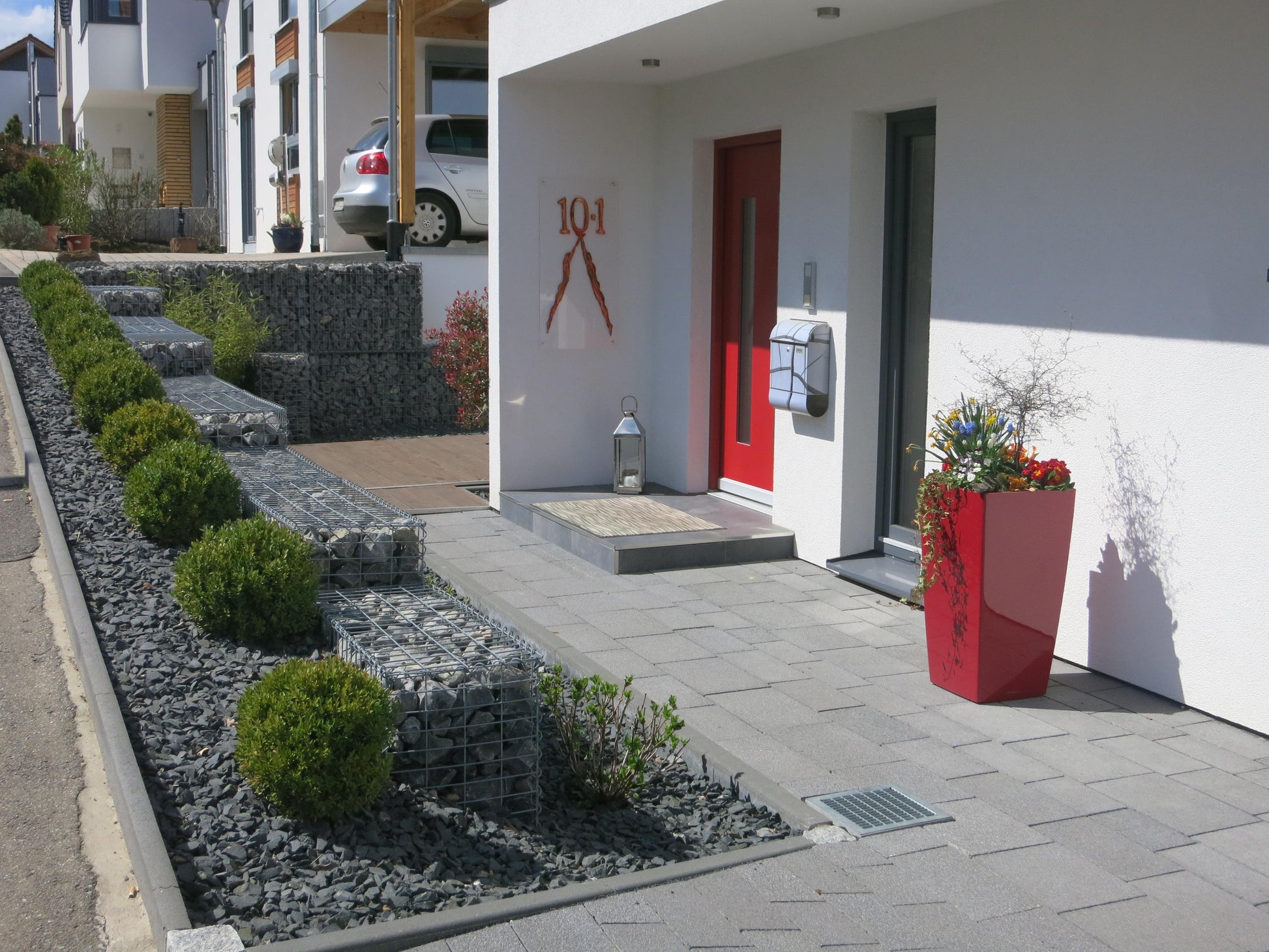 Die Gabione besteht aus stabil verschweißten Gittermatten und ist für höchste Beanspruchungen ausgelegt. Mit einer Zugfestigkeit von über 500 N/mm² und einer Scherfestigkeit der Schweißpunkte von über 3,5 kN überzeugt sie durch enorme Stabilität. Im Salzsprühtest nach DIN EN ISO 9227 wurde eine Beständigkeit von über 3.000 Stunden erreicht – ein klarer Beweis für die hervorragende Qualität und Langlebigkeit.