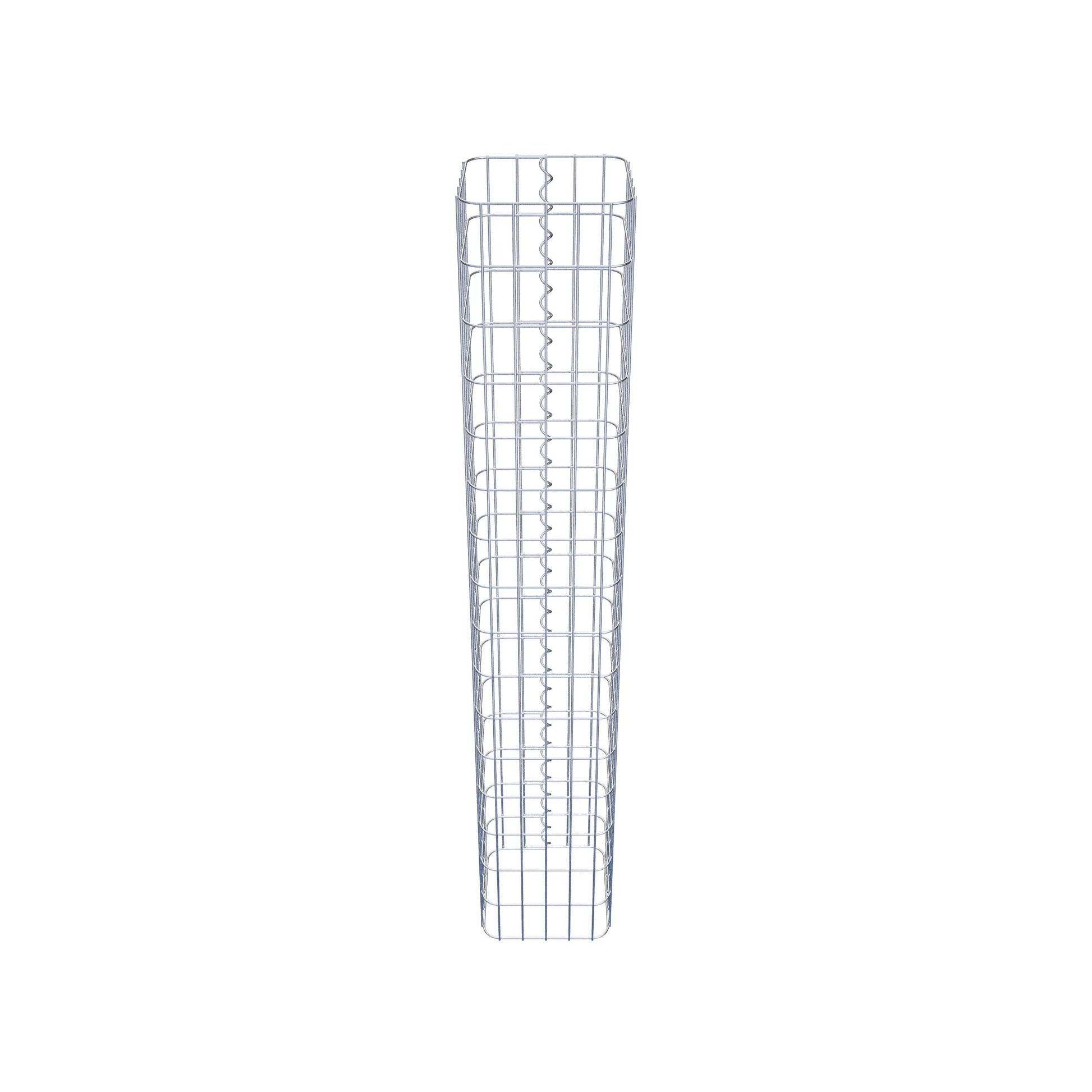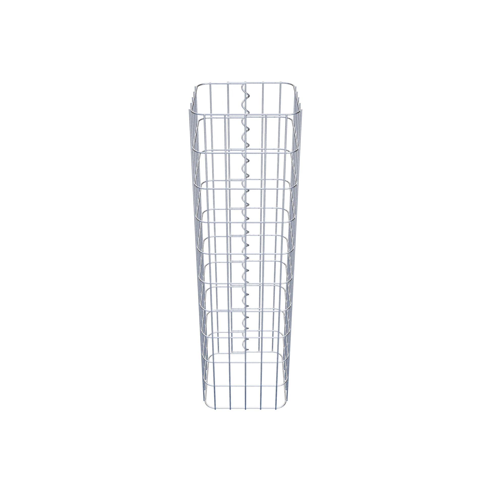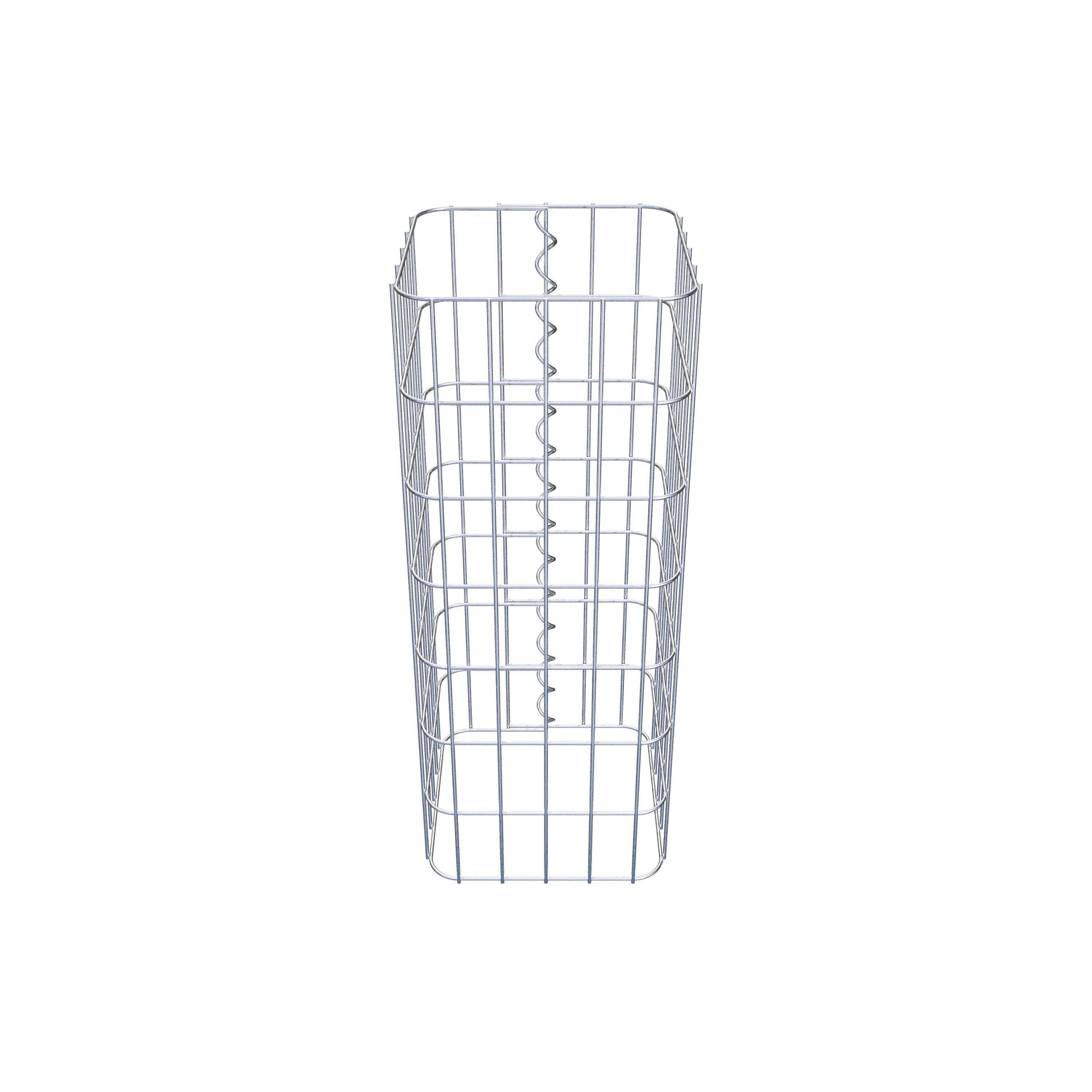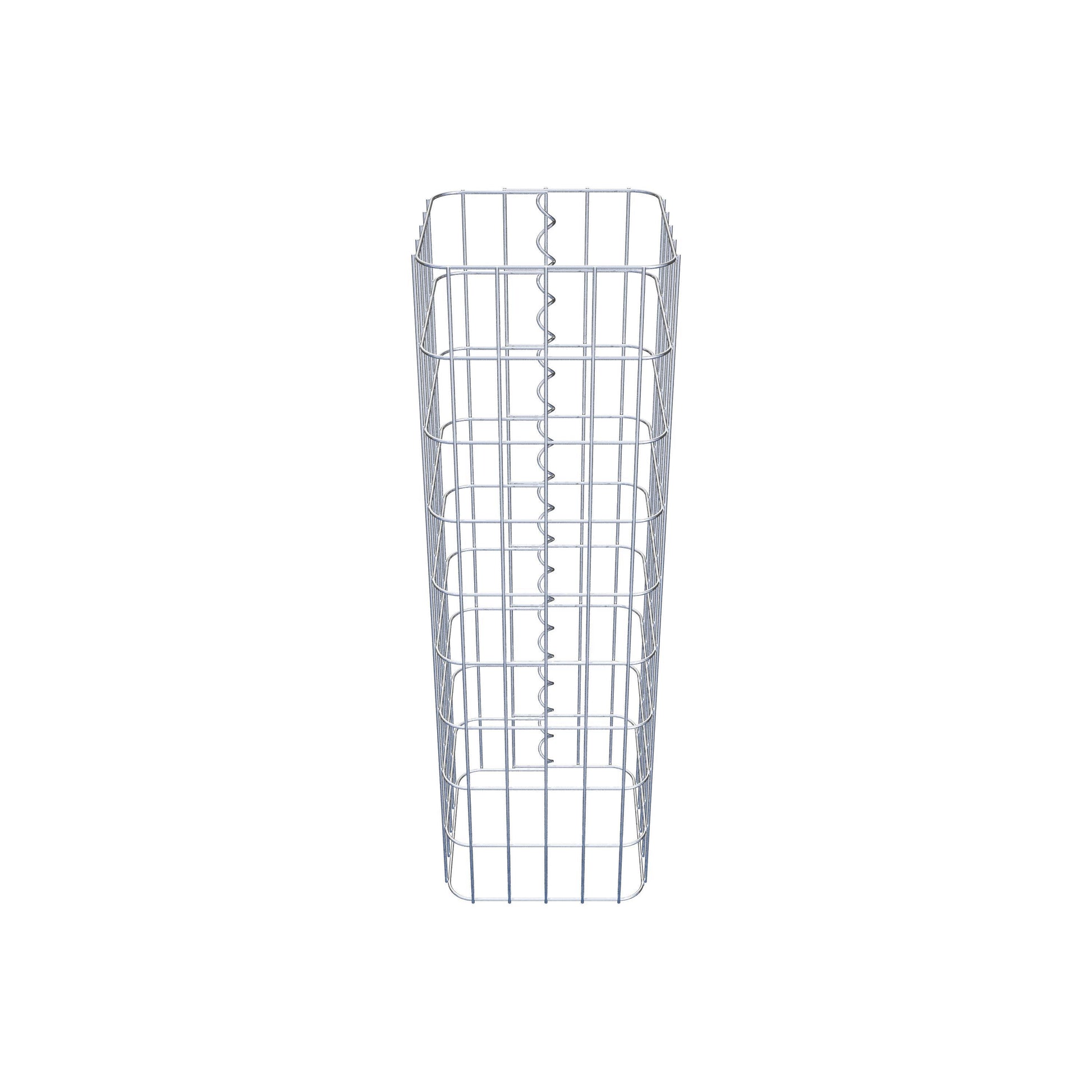 Der seitliche Verschluss erfolgt an der einzigen Überlappungsstelle des Gitters mit einer Spirale, die einfach eingedreht und zusammengedrückt wird. So entsteht eine saubere, sichere und dauerhafte Verbindung. Alternativ kann die Gabionensäule auch mit Klammern verschlossen werden, die separat erhältlich sind. Die Säulen sind nach oben und unten offen – ein Bodengitter oder Deckel ist nicht erforderlich und daher nicht im Lieferumfang enthalten. Bei Bedarf kann ein Deckel zusätzlich erworben werden.