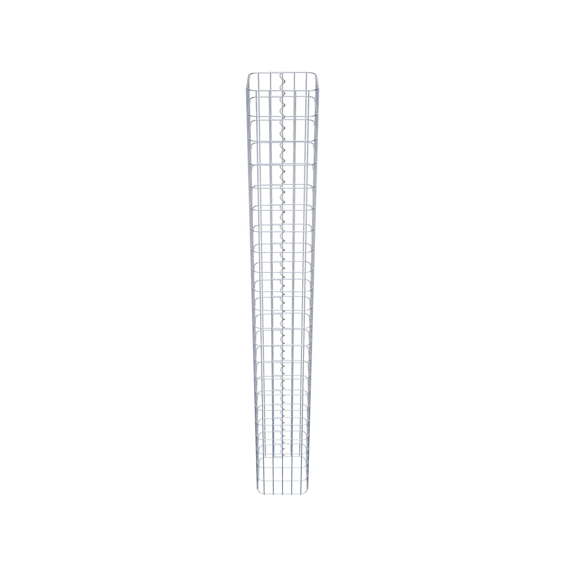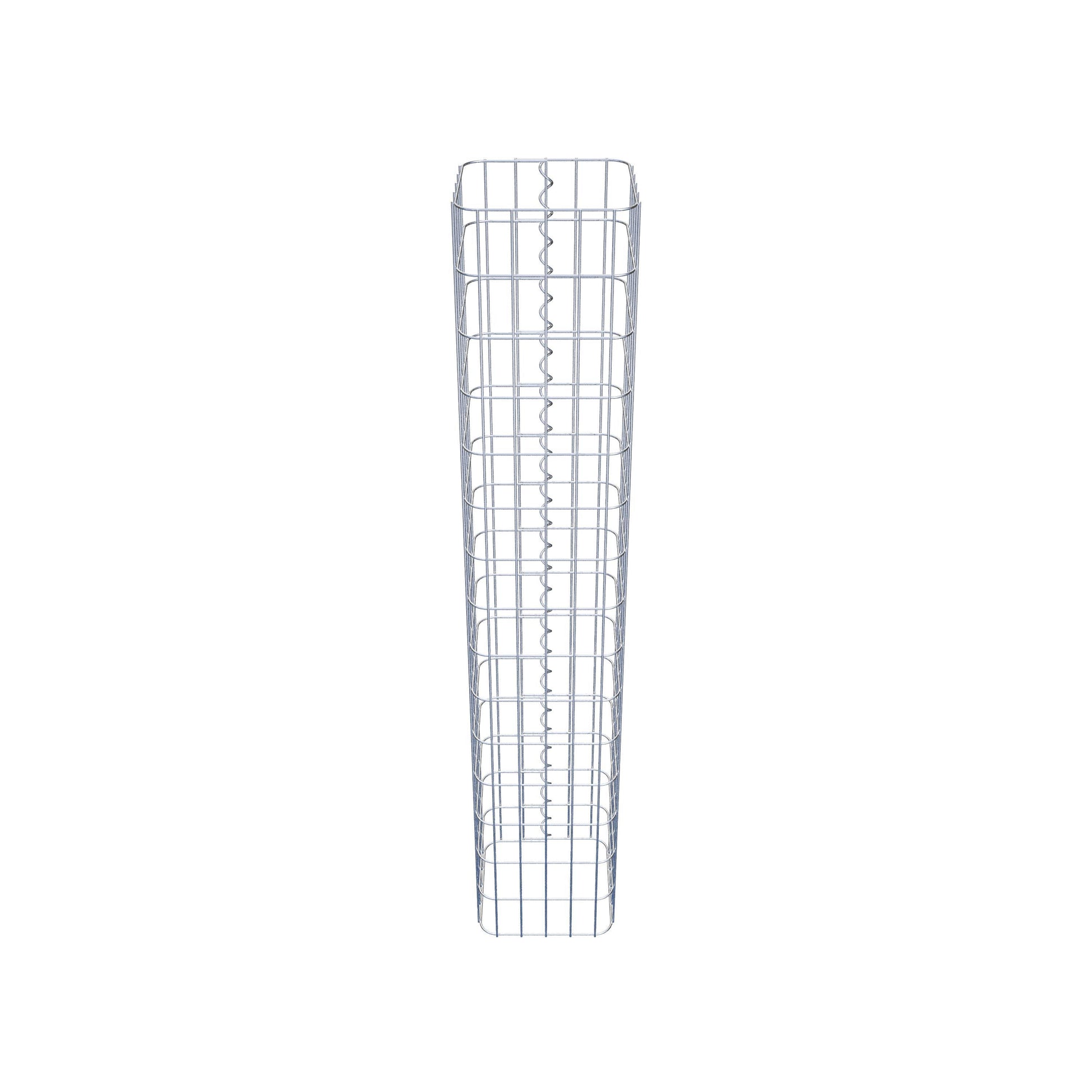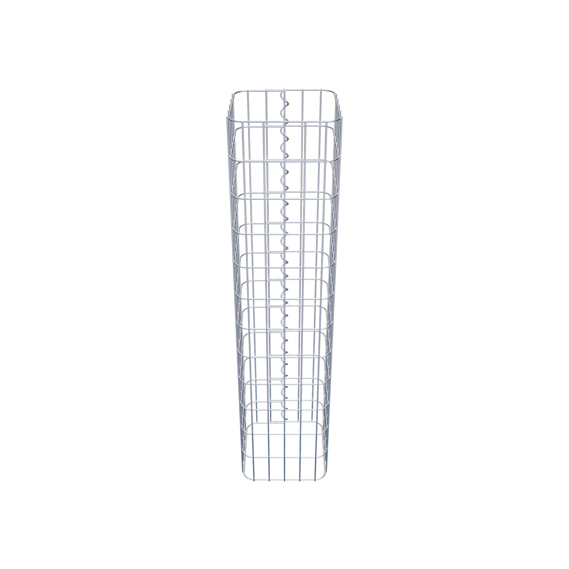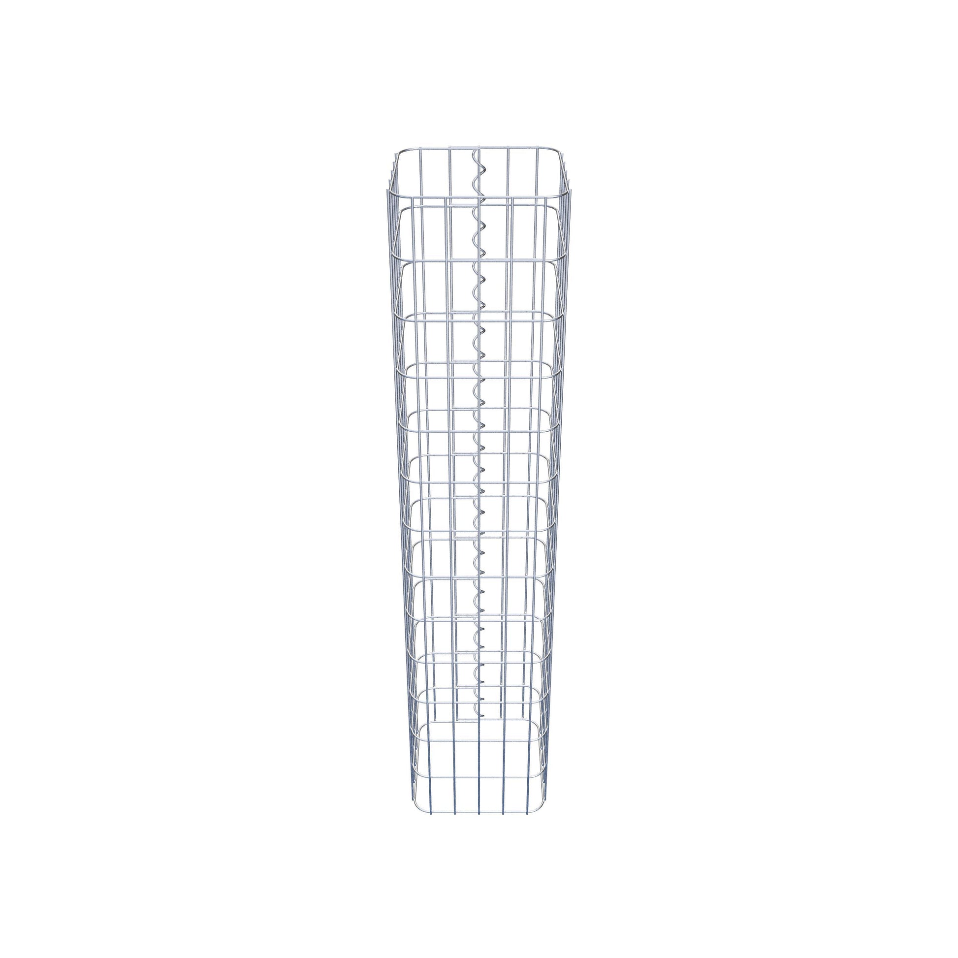 Der seitliche Verschluss erfolgt an der einzigen Überlappungsstelle des Gitters mit einer Spirale, die einfach eingedreht und zusammengedrückt wird. So entsteht eine saubere, sichere und dauerhafte Verbindung. Alternativ kann die Gabionensäule auch mit Klammern verschlossen werden, die separat erhältlich sind. Die Säulen sind nach oben und unten offen – ein Bodengitter oder Deckel ist nicht erforderlich und daher nicht im Lieferumfang enthalten. Bei Bedarf kann ein Deckel zusätzlich erworben werden.