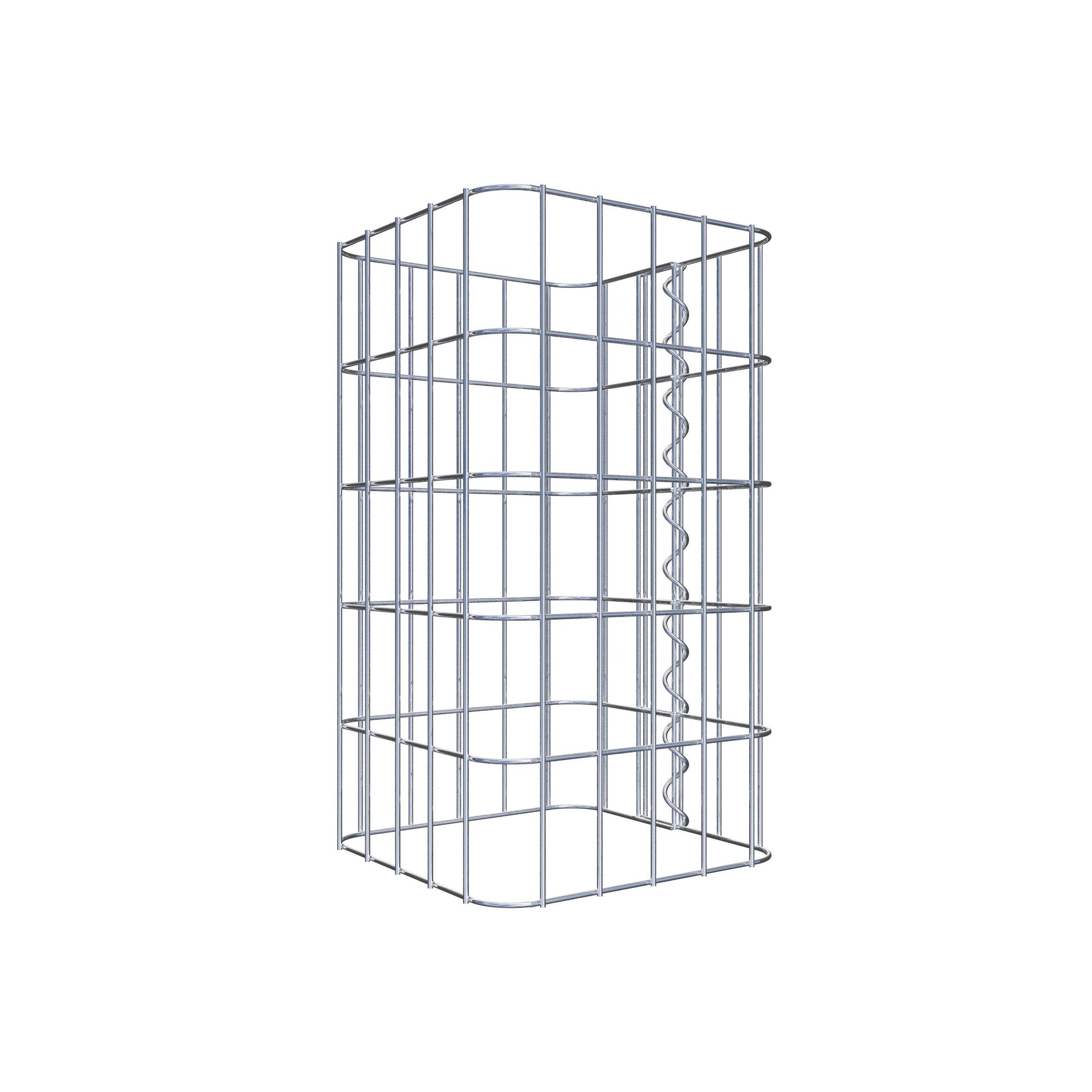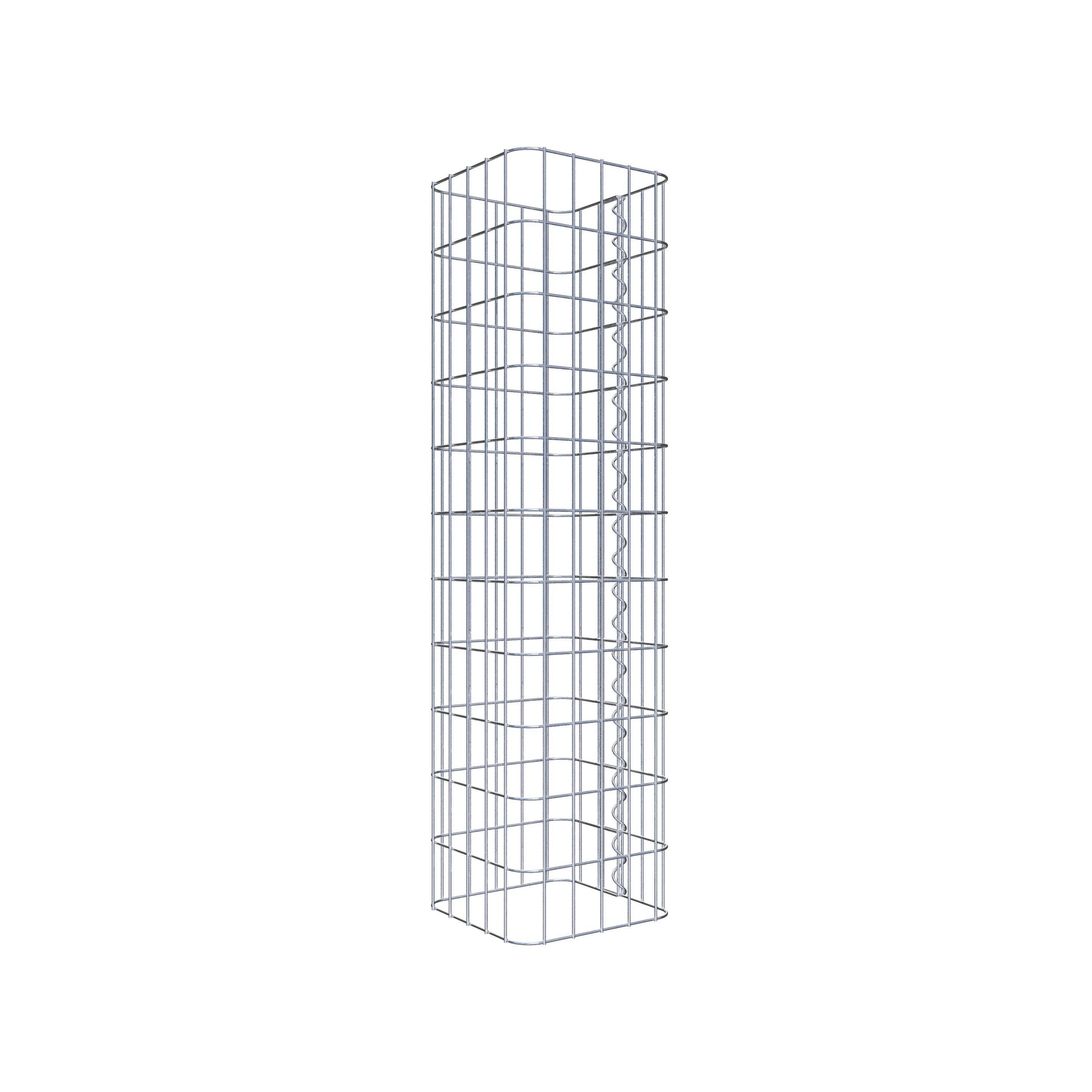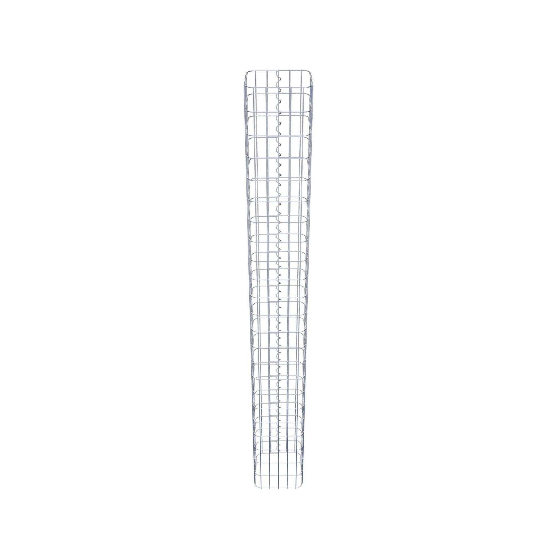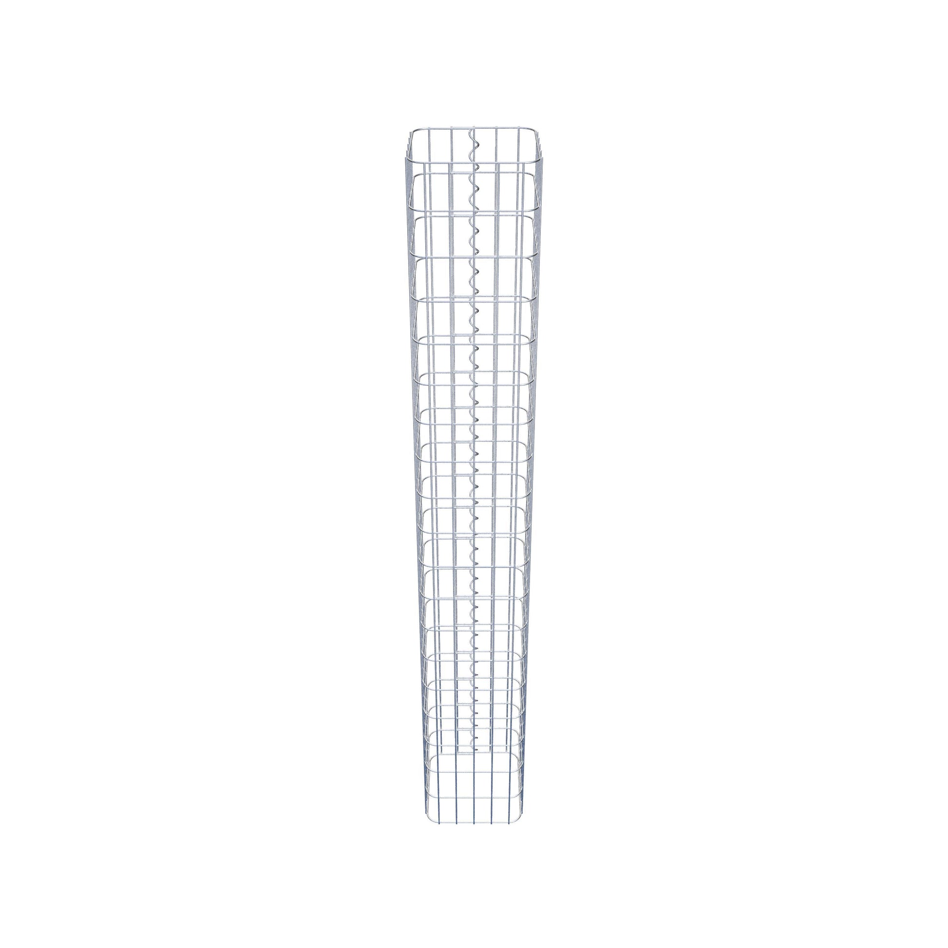 Der seitliche Verschluss erfolgt an der einzigen Überlappungsstelle des Gitters mit einer Spirale, die einfach eingedreht und zusammengedrückt wird. So entsteht eine saubere, sichere und dauerhafte Verbindung. Alternativ kann die Gabionensäule auch mit Klammern verschlossen werden, die separat erhältlich sind. Die Säulen sind nach oben und unten offen – ein Bodengitter oder Deckel ist nicht erforderlich und daher nicht im Lieferumfang enthalten. Bei Bedarf kann ein Deckel zusätzlich erworben werden.