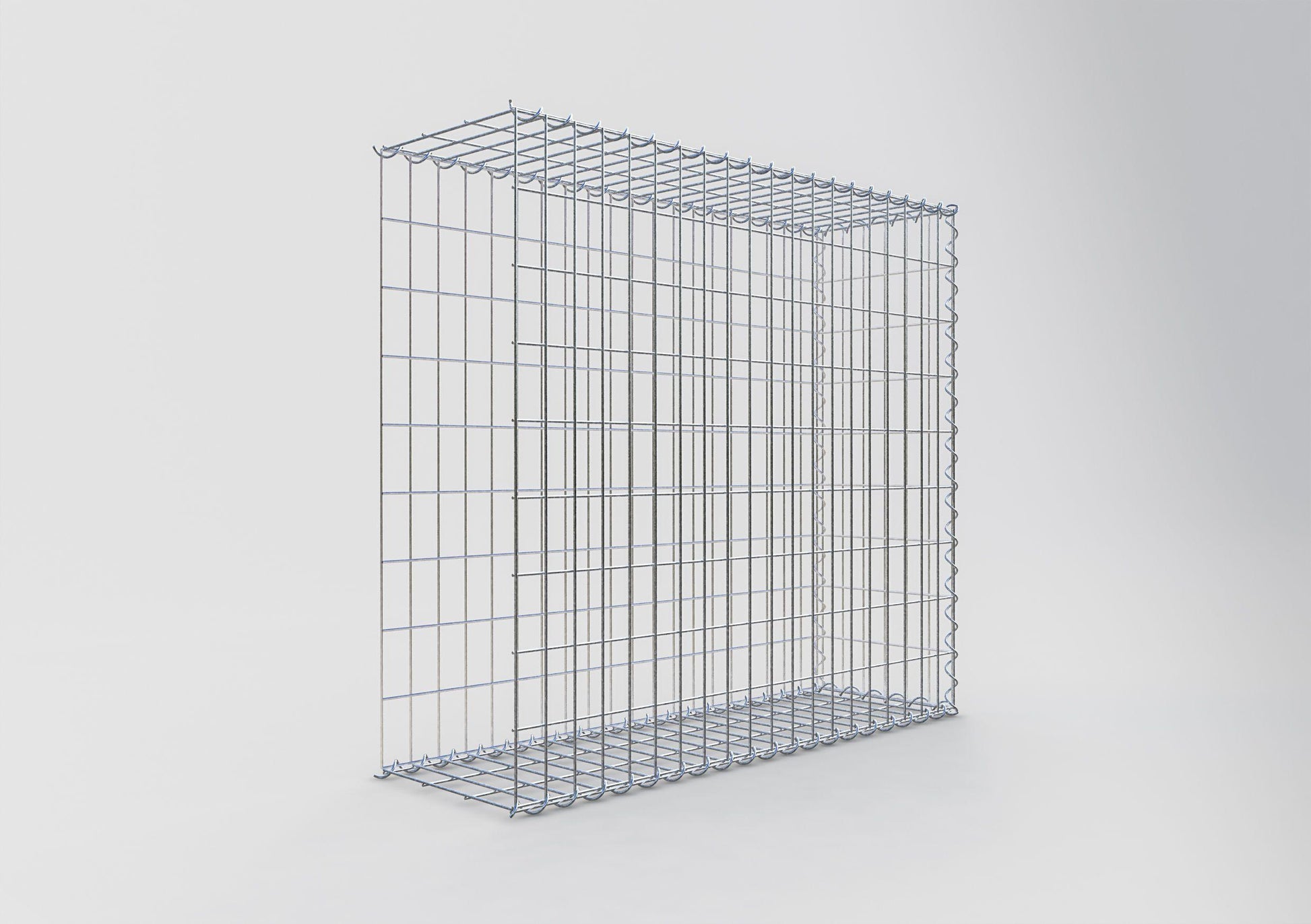 A este gavión le falta una rejilla frontal. Esto permite que su gavión crezca en longitud. Tenga en cuenta que el