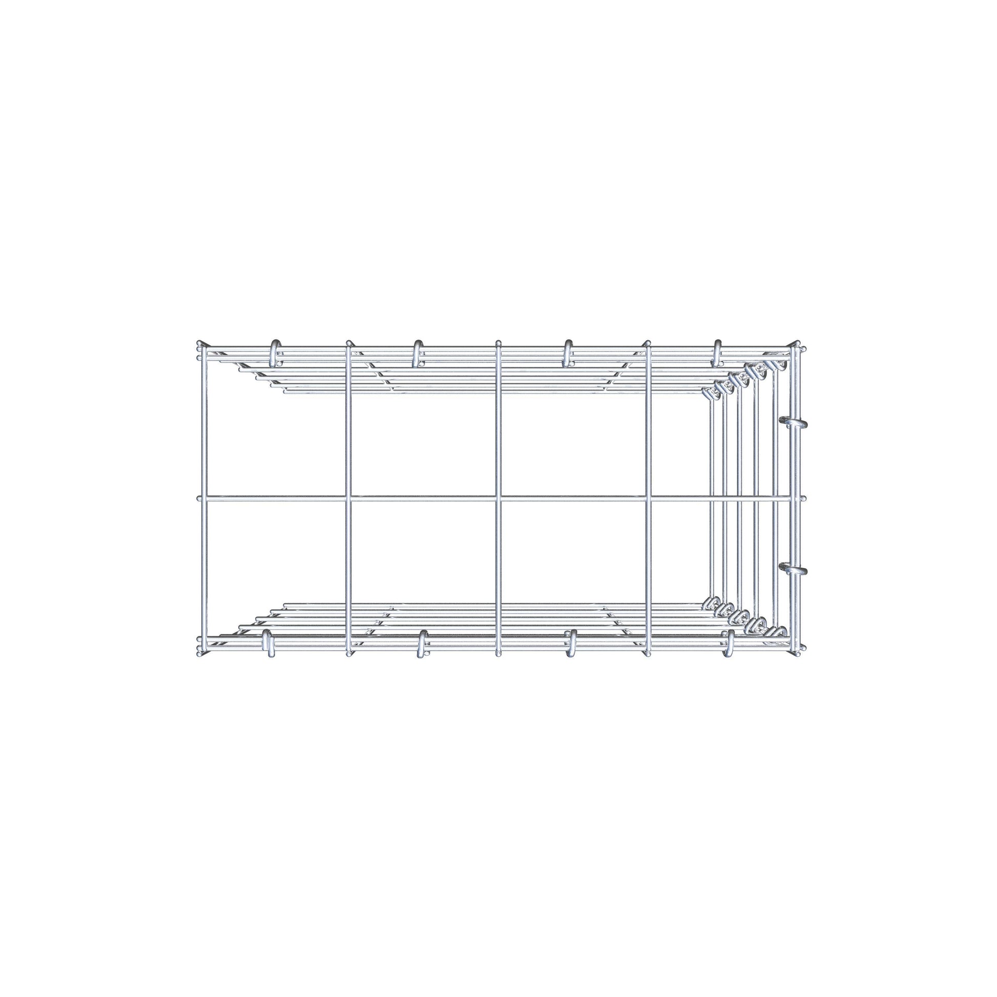 Este gavión no tiene rejilla frontal ni en la base. Esto permite que su gavión crezca tanto en longitud como en altura. Tenga en cuenta que el