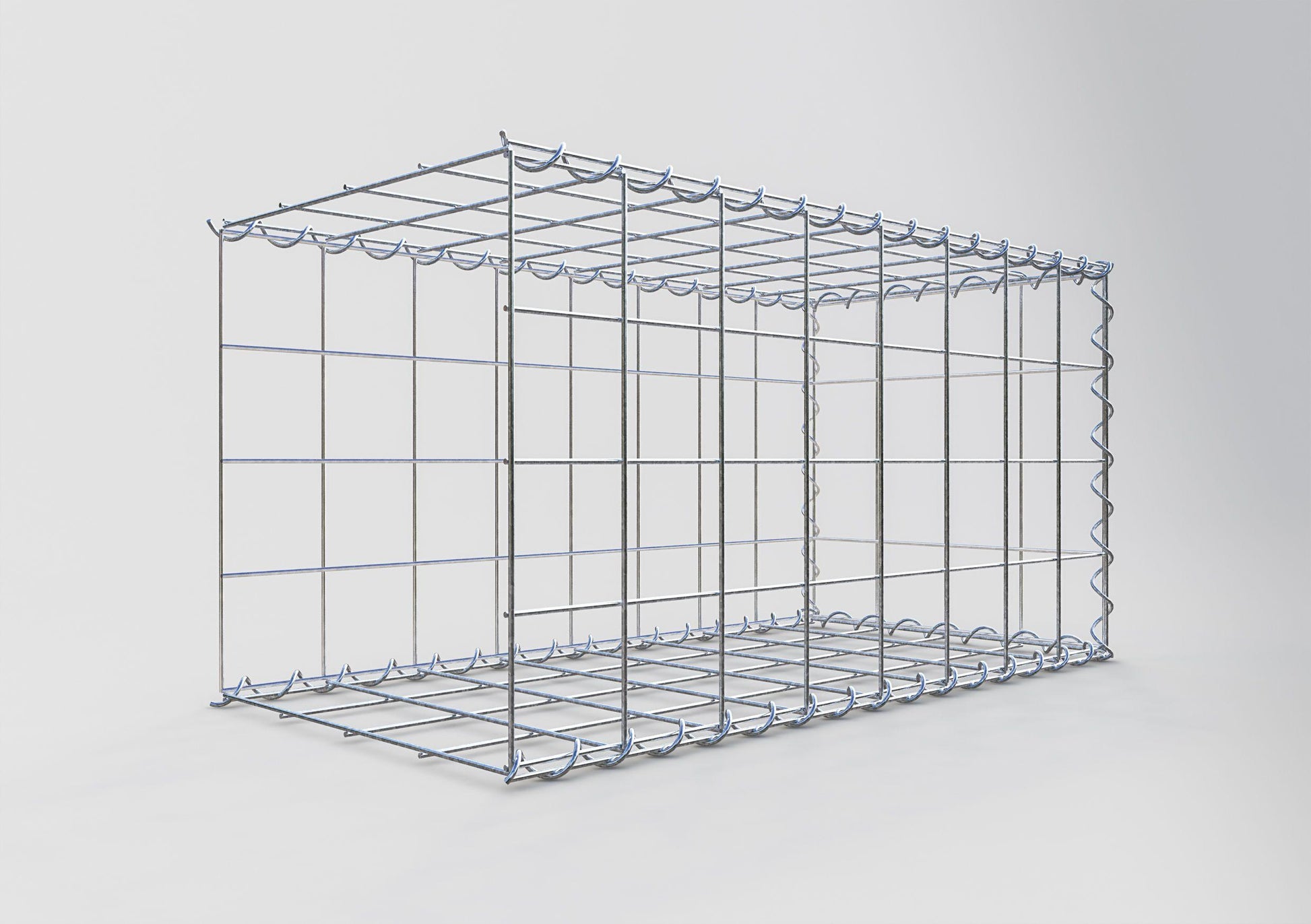 Relie les treillis sans aucun outil - rapidement, facilement et en toute sécurité. Les spirales sont la manière la moins compliquée de construire des gabions stables à partir de nos grillages. Le fil de fer de 4 mm d'épaisseur est plié en forme de spirale et est torsadé à travers les grillages au niveau des bords. Tourne la spirale le long du bord pour que les grillages soient uniformément et solidement reliés entre eux.