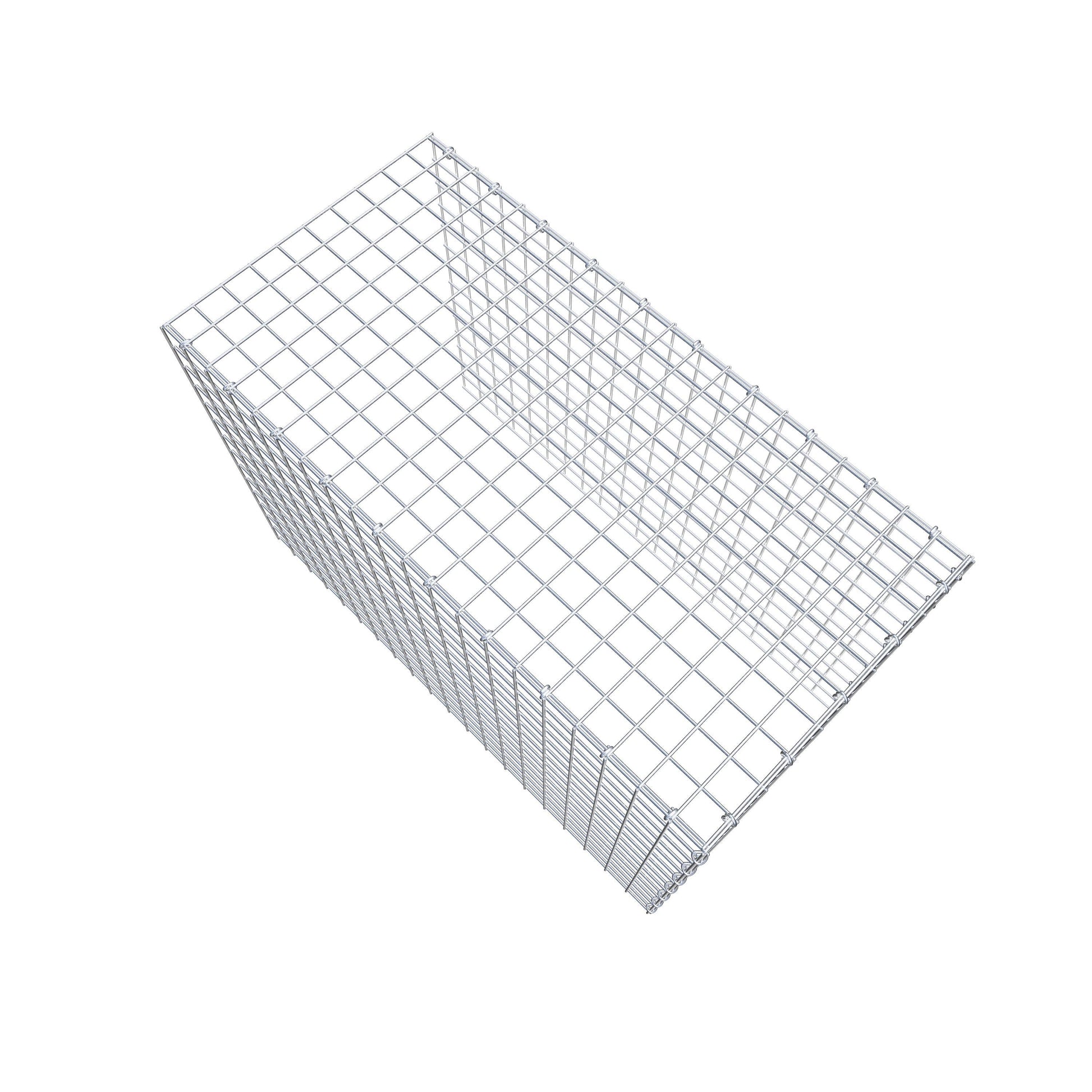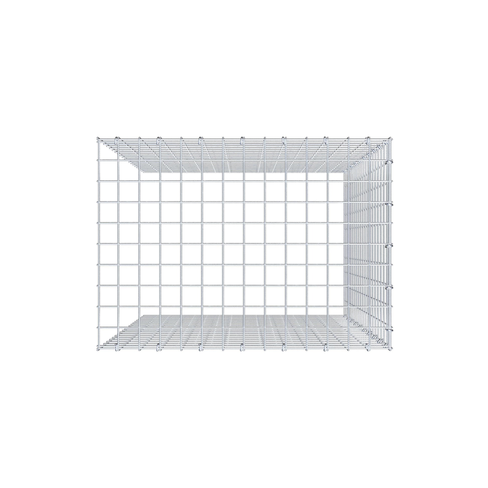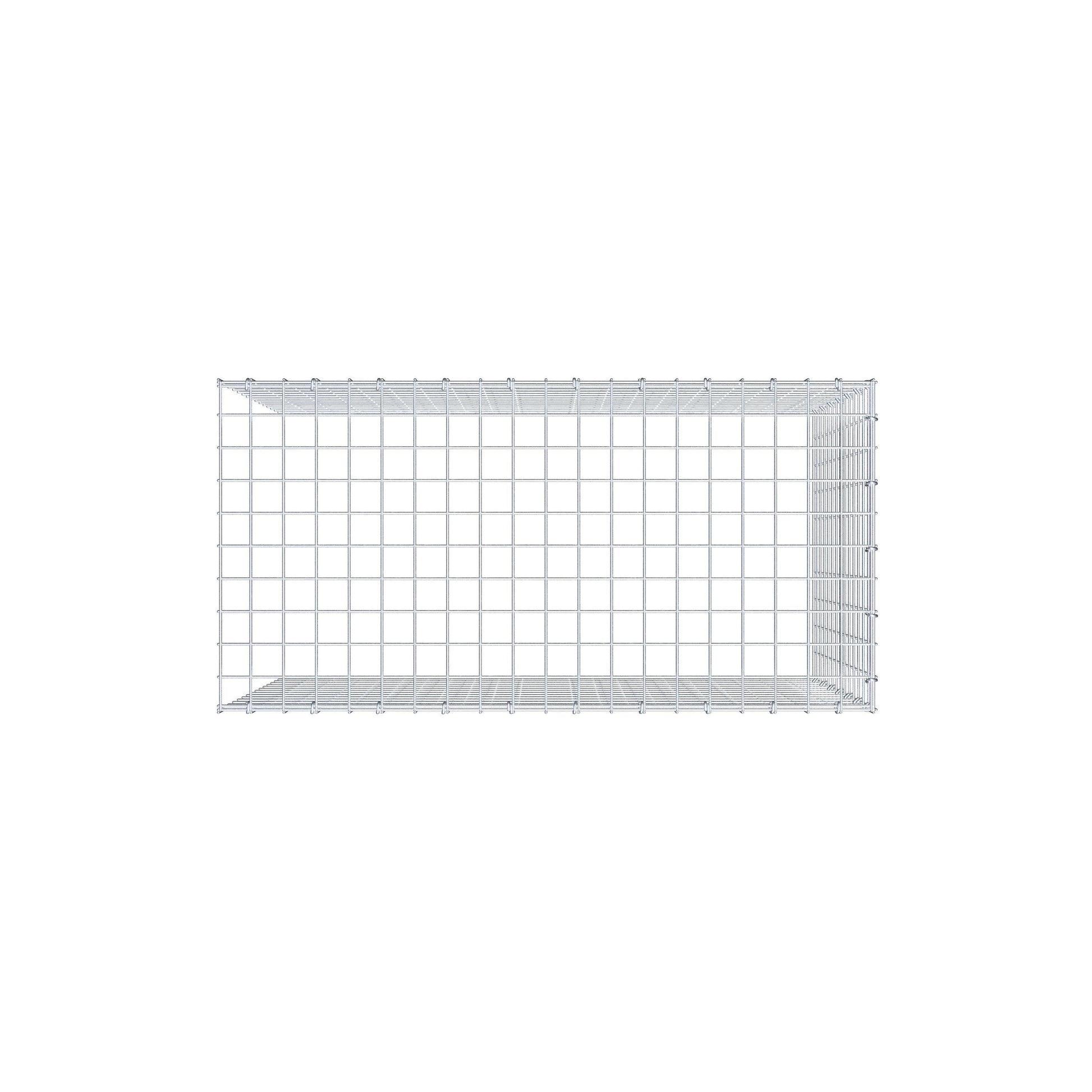 - Remarque : pas de propre grille de fond ni de grille frontale - la liaison se fait par la grille du couvercle et la fermeture du gabion inférieur ainsi que par la fermeture du gabion latéral.