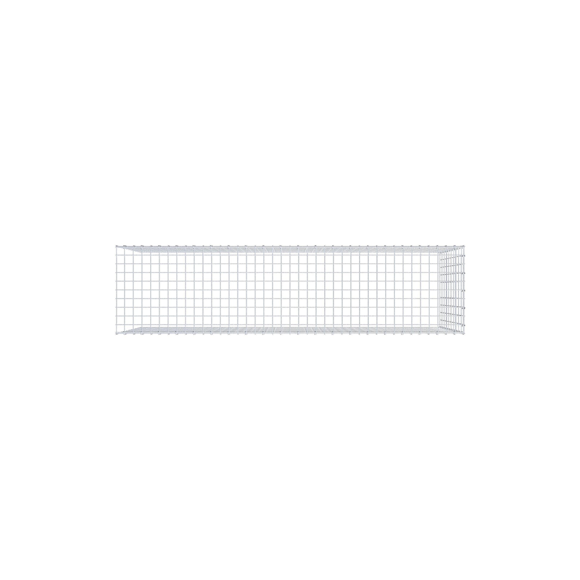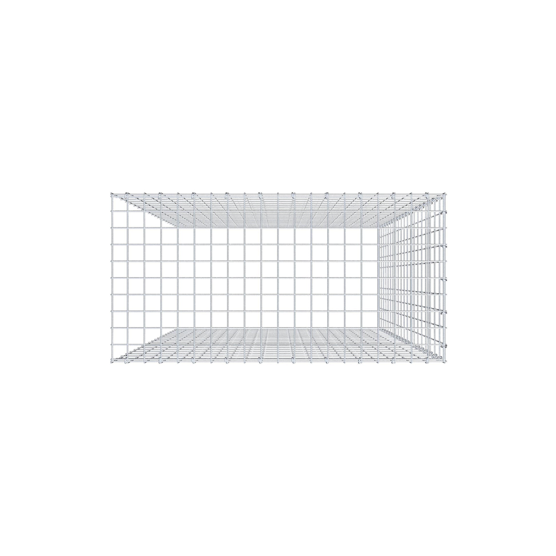 • Remarque : pas de propre grille de fond ni de grille frontale - la liaison se fait par la grille du couvercle et la fermeture du gabion inférieur ainsi que par la fermeture du gabion latéral.