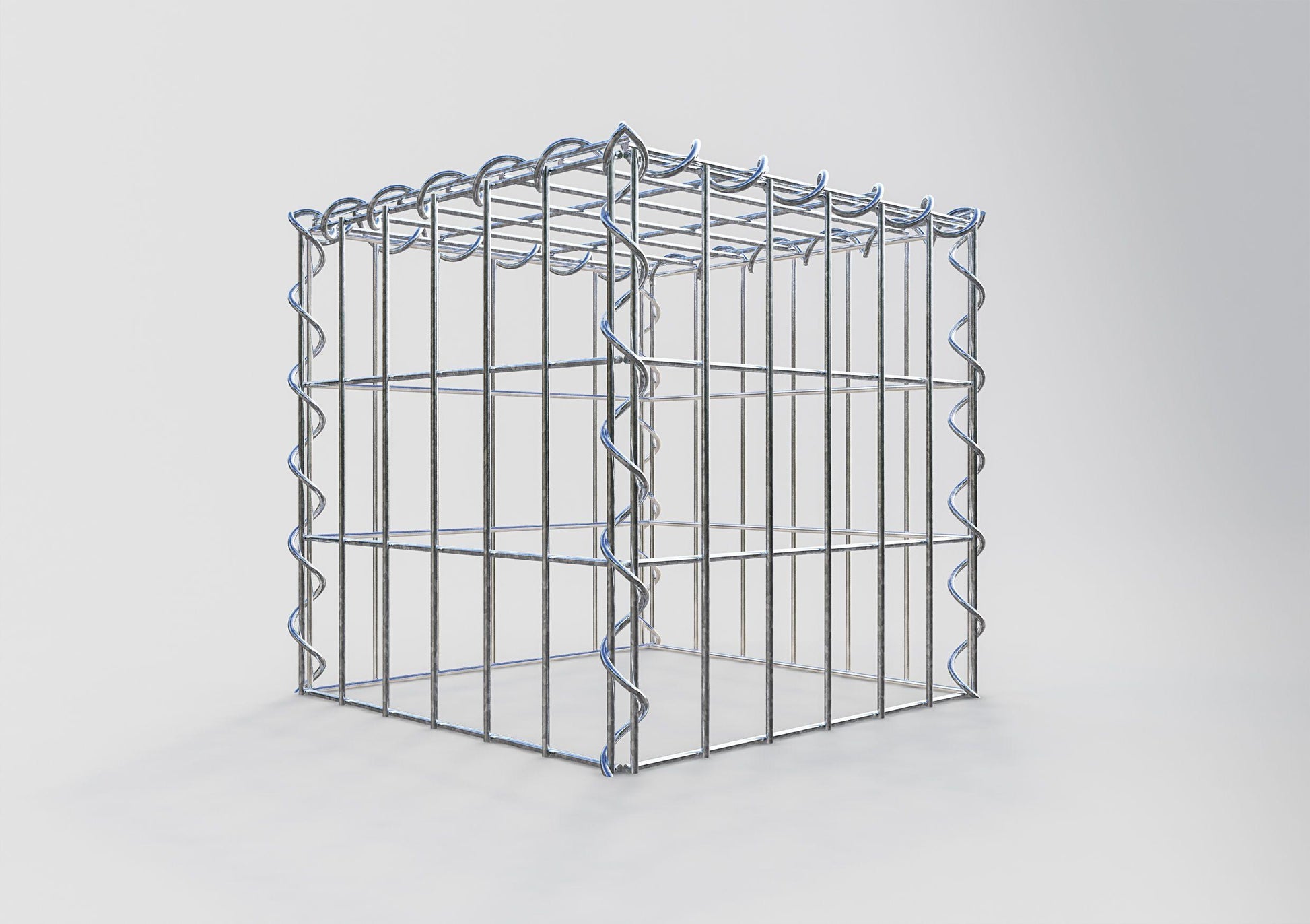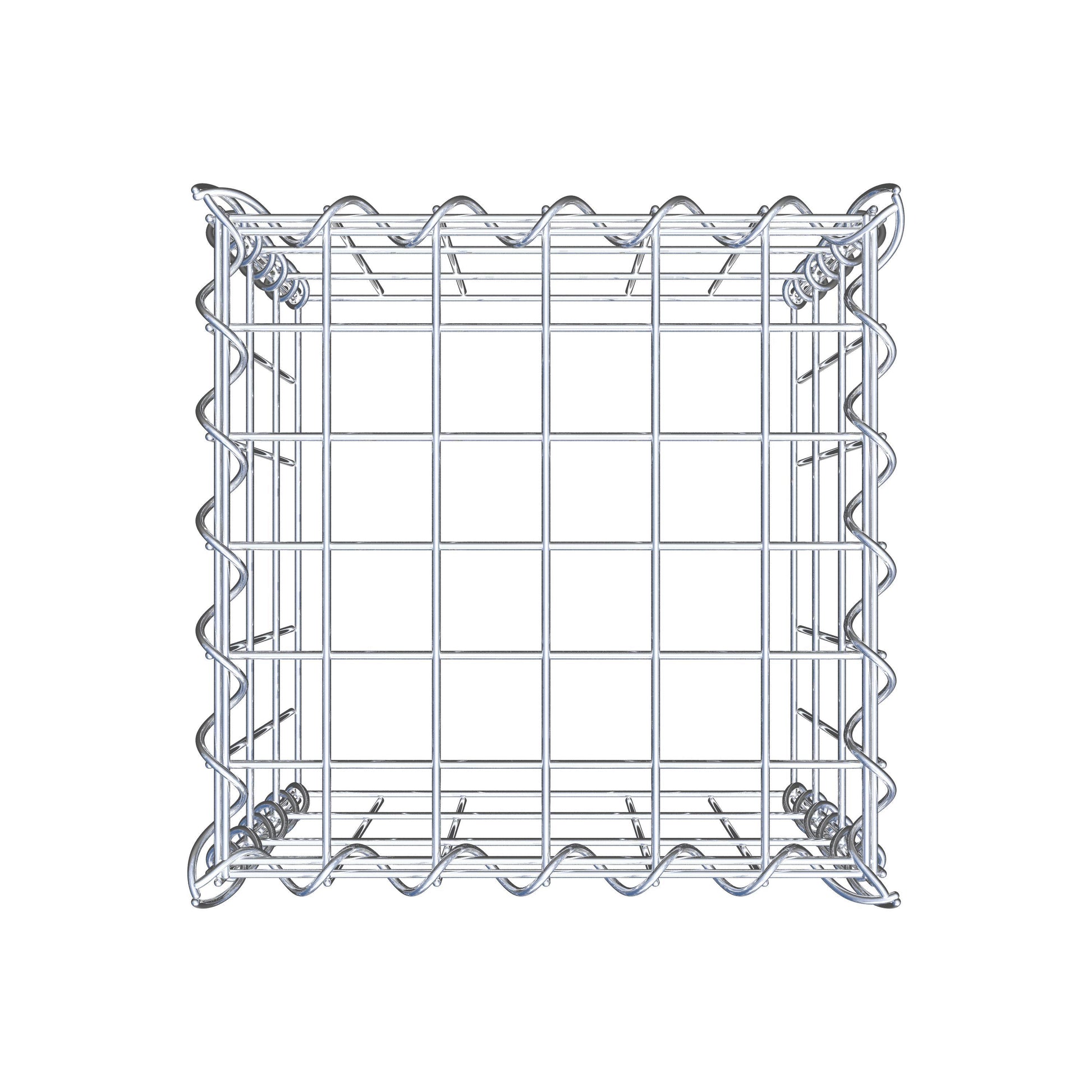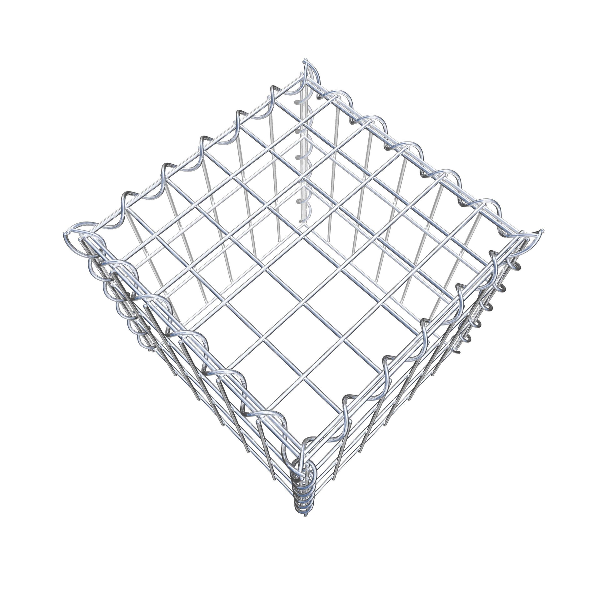 Opbouw schanskorf type 3 30 cm x 30 cm x 30 cm (L x H x D), maaswijdte 5 cm x 10 cm, spiraalvormig