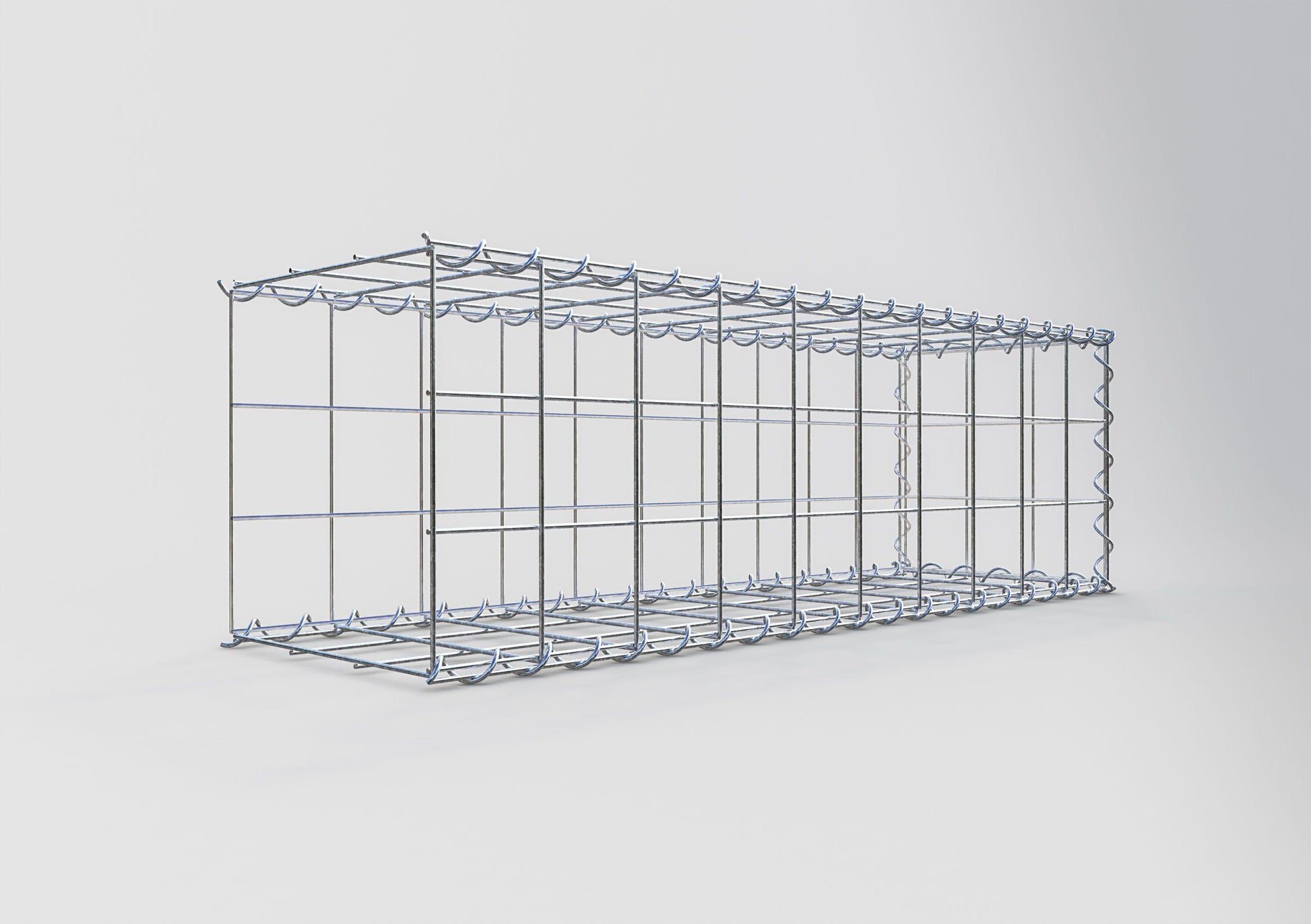Este gabião não tem grade frontal. Isso permite que seu gabião cresça em comprimento. Observe que o
