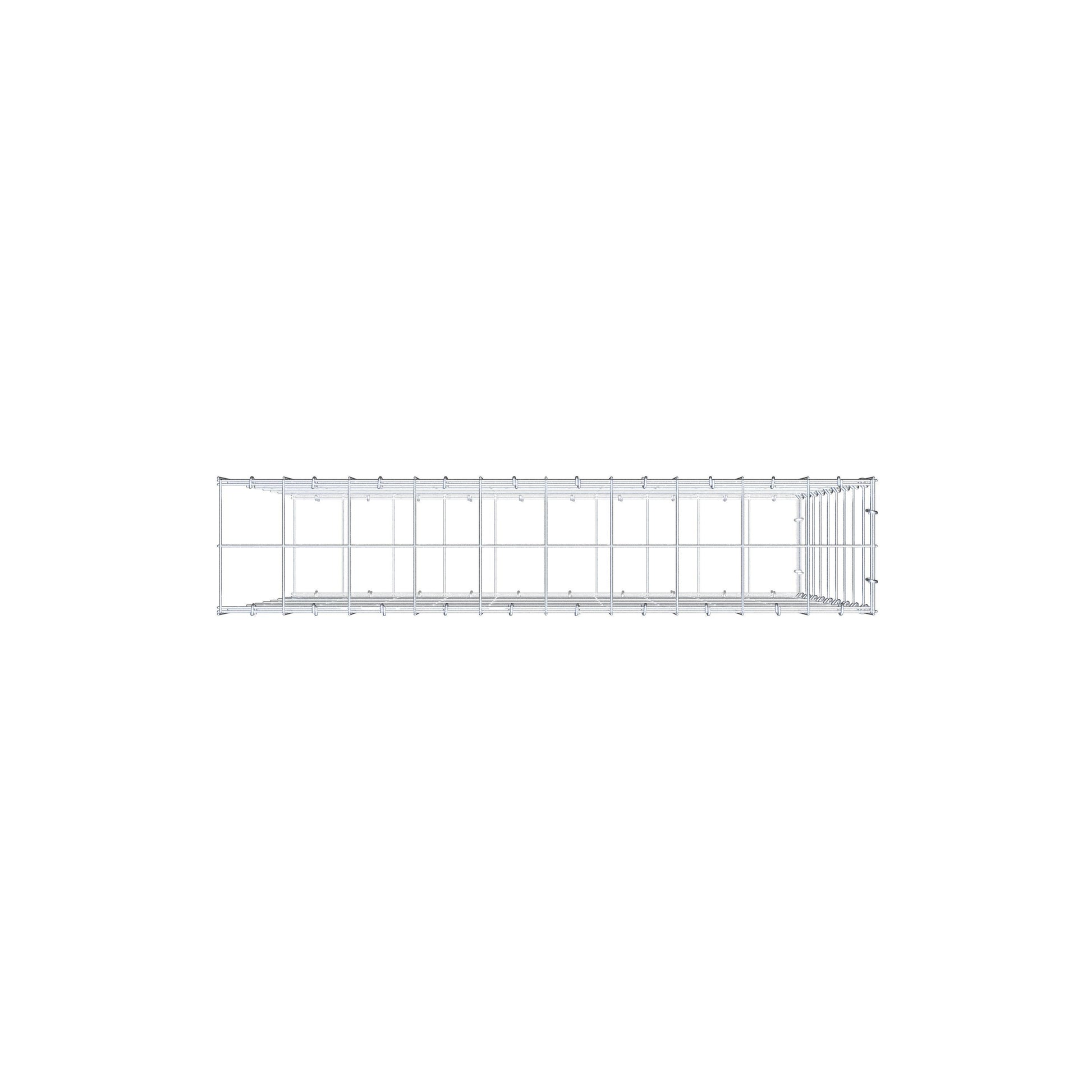 Este gabião não tem grade frontal. Isso permite que seu gabião cresça em comprimento.