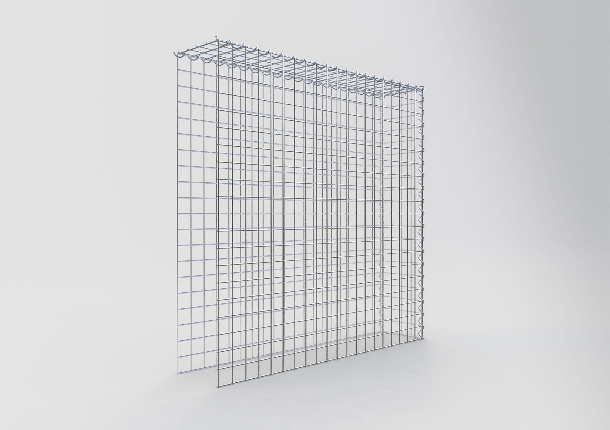 Este gabião não tem grade frontal e inferior. Isso permite que seu gabião cresça tanto em comprimento quanto em altura. Observe que o