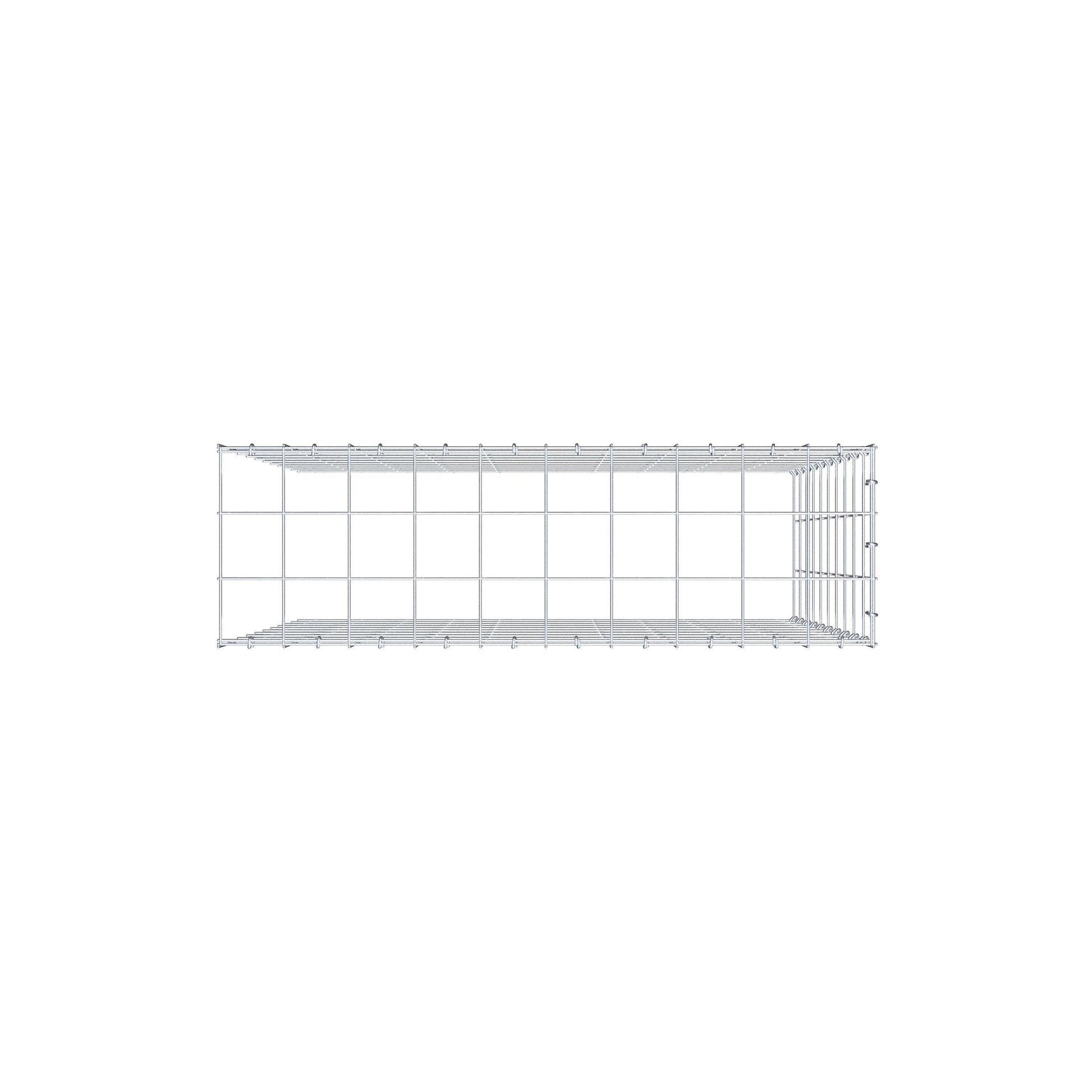 Este gabião não tem grade frontal e inferior. Isso permite que seu gabião cresça tanto em comprimento quanto em altura. Observe que o