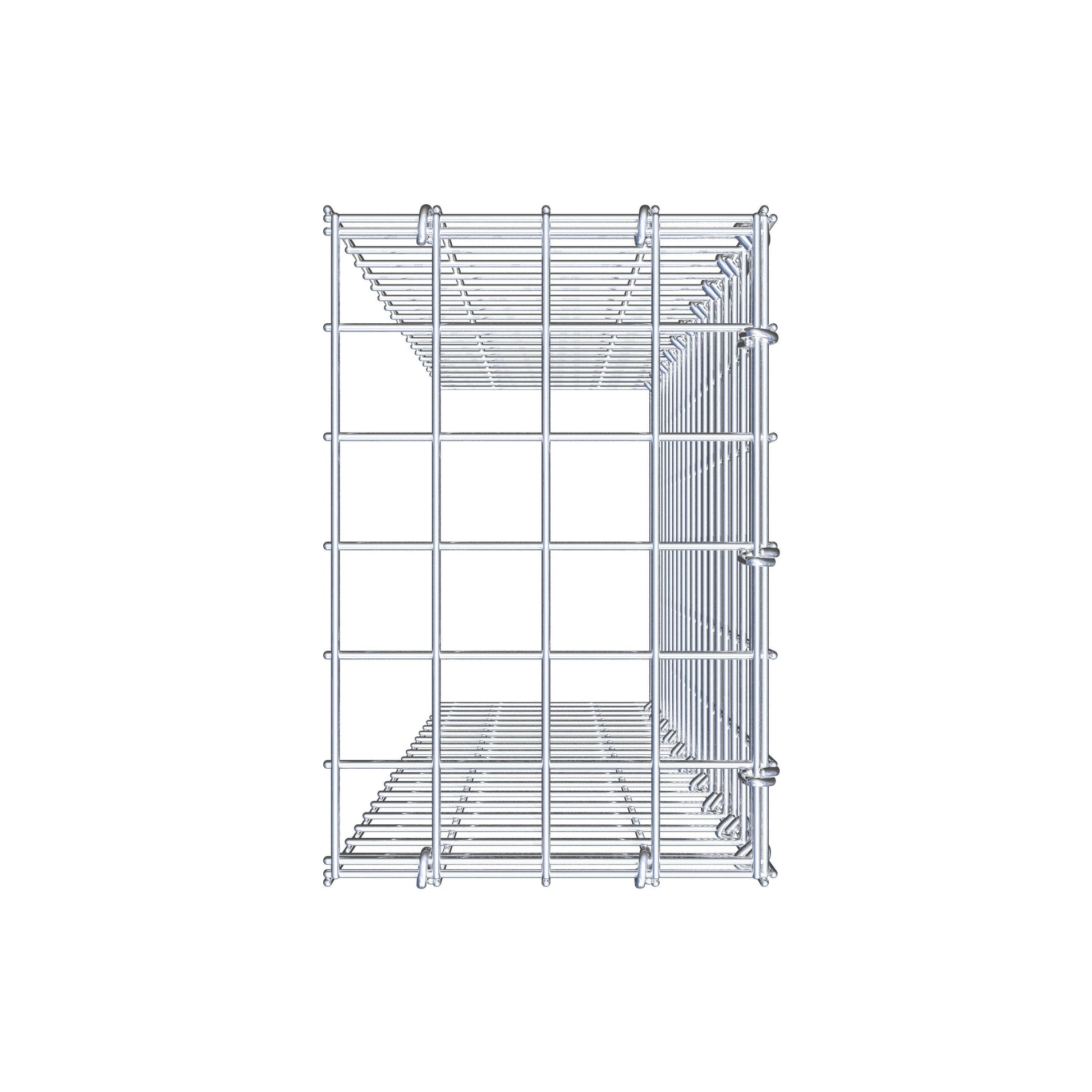 Este gabião não tem grade frontal e inferior. Isso permite que seu gabião cresça tanto em comprimento quanto em altura.