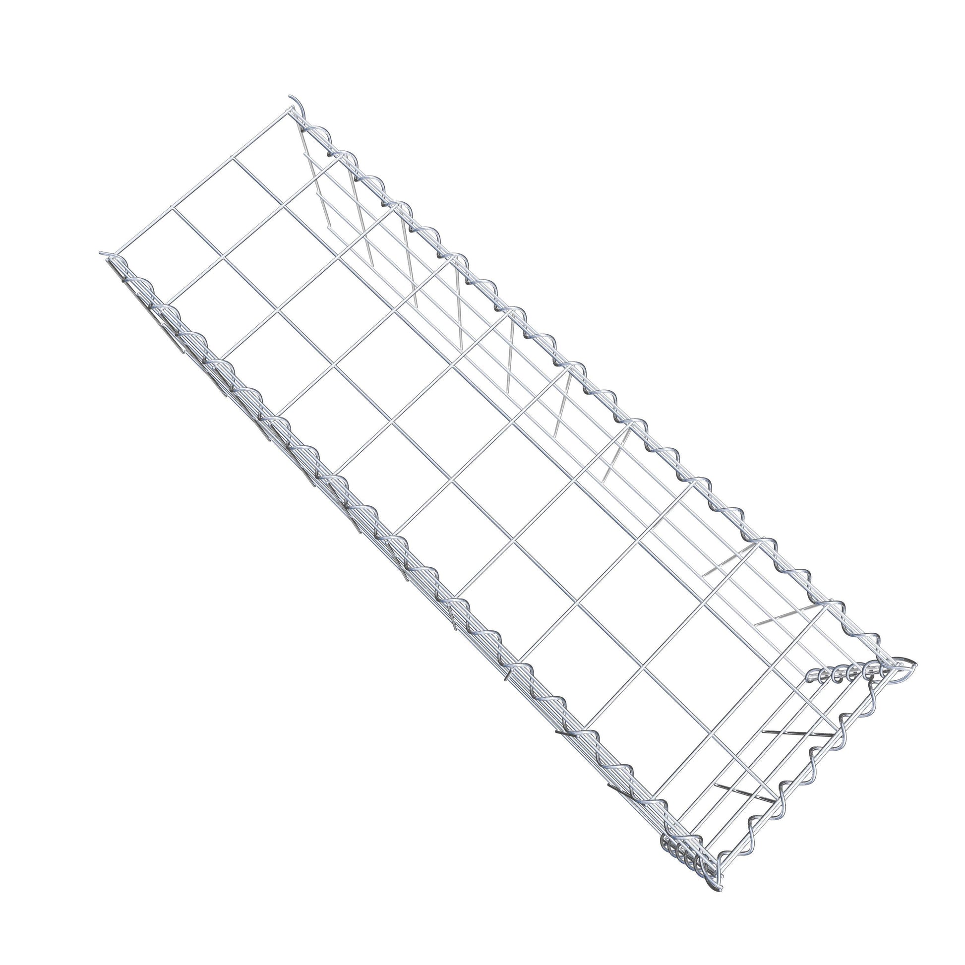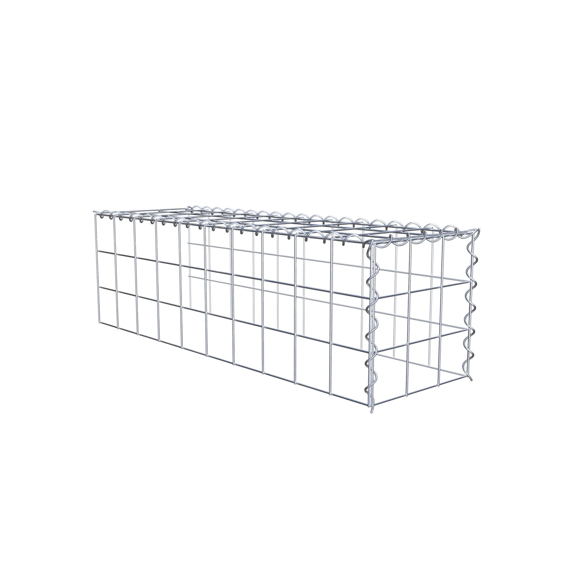 Este gabião não tem grade frontal e inferior. Isso permite que seu gabião cresça tanto em comprimento quanto em altura. Observe que o