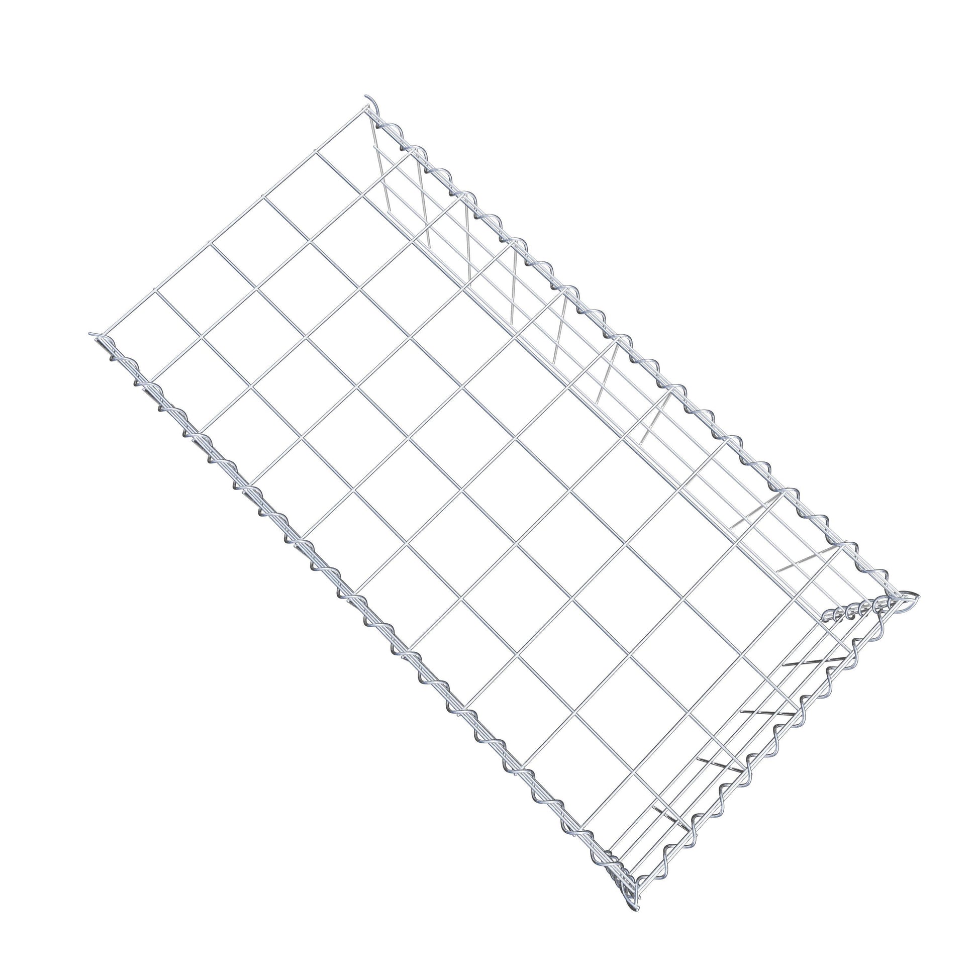 Este gabião não tem grade frontal e inferior. Isso permite que seu gabião cresça tanto em comprimento quanto em altura. Observe que o